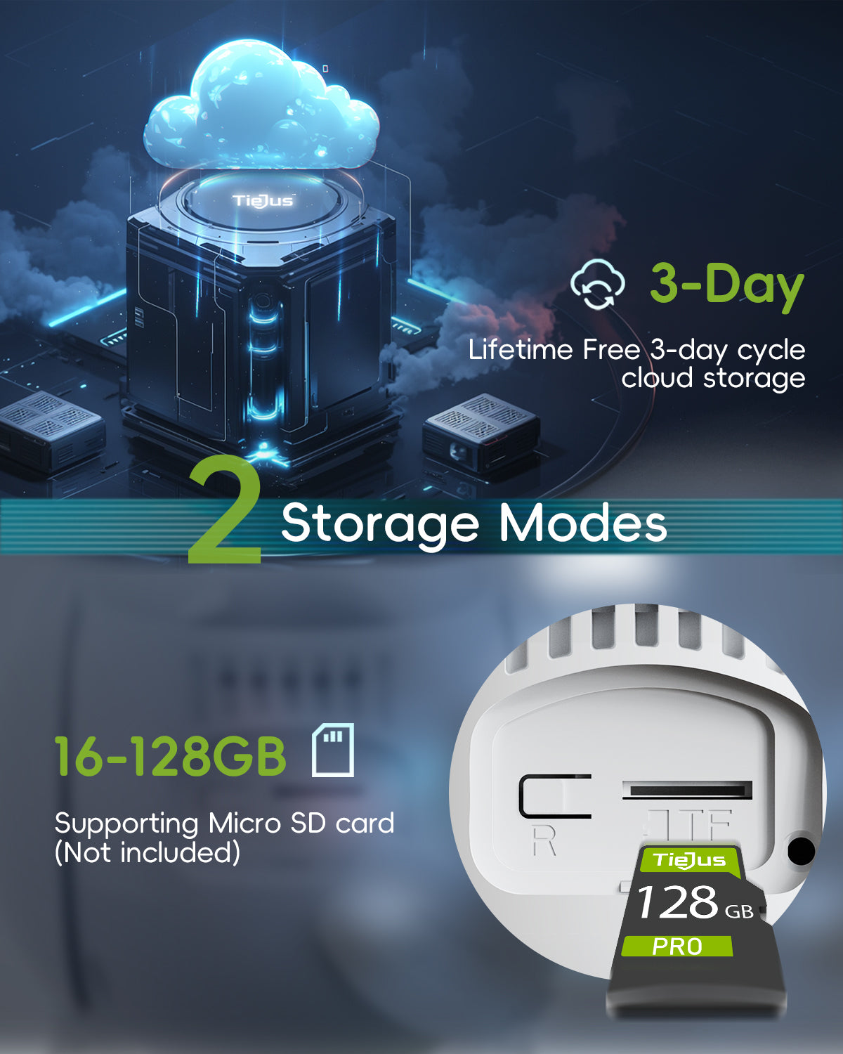 [ 2K HD Resolution & 3 Days Free Cycle Cloud Storage ] - Security cameras wireless outdoor with 2K HD wide-angle lens for 4x digital zoom,Tiejus home security cameras provides free 3-day rotating cloud storage without paying monthly fees. Cloud storage with encrypted secure data and privacy protection or 16-256GB Memory card (Not included) support